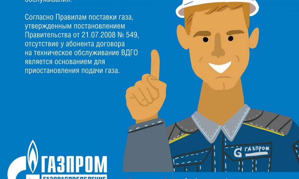 Согласно постановлению Правительства № 410 от 14 мая 2013 года «О мерах по обеспечению безопасности при предоставлении услуг по газоснабжению при пользовании и содержании внутридомового и внутриквартирного газового оборудования». Потребитель обязан иметь заключенный договор на техническое обслуживание внутридомового и внутриквартирного газового оборудования (далее ТО ВДГО и ВКГО).